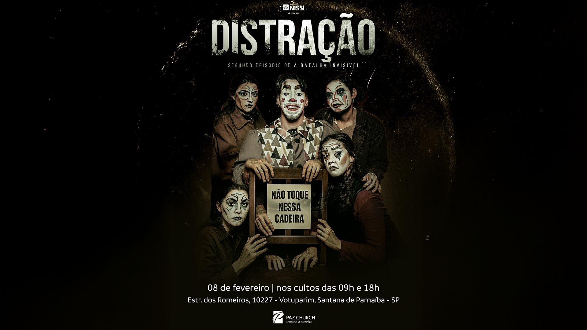 Teremos uma noite especial na presença de Deus! Vamos receber o Teatro Nissi, com uma apresentação impactante que comunica verdades profundas do Evangelho de forma criativa e relevante.